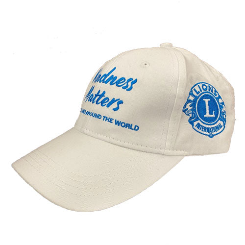 Kindness Matters (思いやりは大切なこと) のメッセージ付きの白いおしゃれなキャップです。 素材:コットンツイル